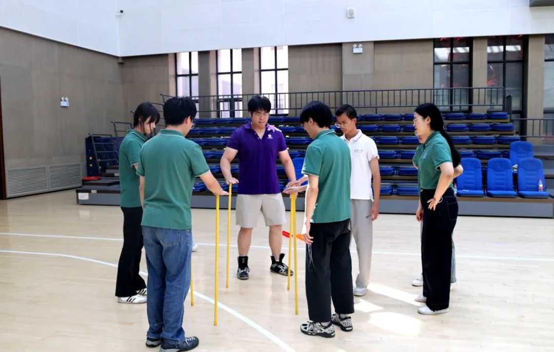 11时30分,“急速60秒”项目开始,学子们在限时挑战中默契配合、高效沟通,现场气氛逐渐升温。短暂休息后,“挑战150”系列项目接续展开。巧接彩珠的精准协作、卓越圈的节奏把控、不倒森林的专注力考验、珠行万里的接力配合以及激情节拍的活力迸发,让整个篮球馆充满了青春活力。各环节衔接紧凑,学子们认真投入,在团队协作中突破自我,在互动比拼中加深了解、增进团结。