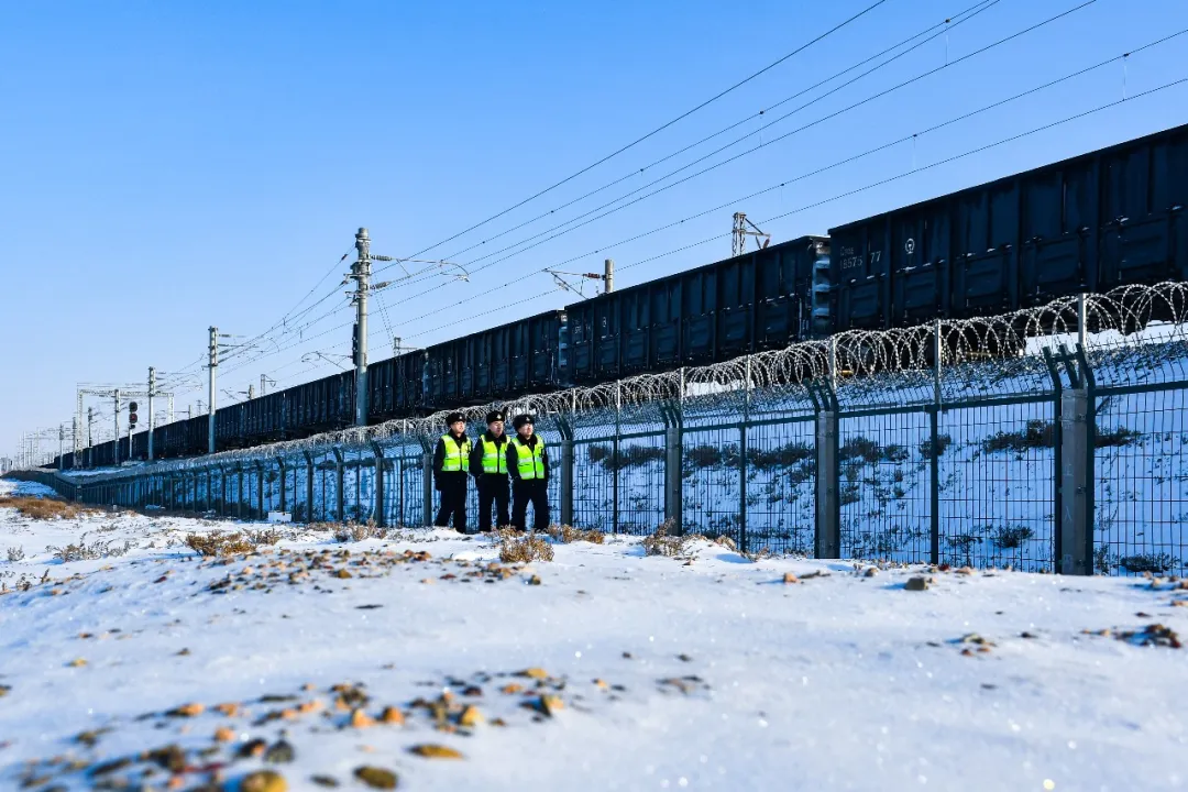 “昨天巡查时发现一段围栏被风吹歪了,今天加固后又排查出两处积雪压塌的铁丝网——这种天气容不得半点马虎。”民警谢亮亮拍掉警服上的雪块,指着身后一列正缓缓驶入换装站的中欧班列说,“只要班列能安全正点通行,我们多跑几趟、多冻一会儿都值。”