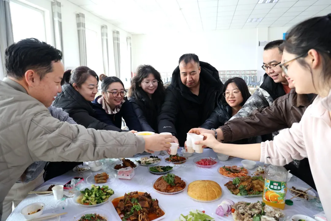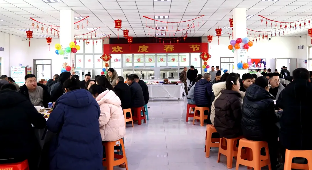 记者在机关食堂看到,红红的窗花、喜庆的彩带, 浓浓的“年味”扑面而来。圆桌上摆满了精心烹饪的丰盛菜肴和热气腾腾的饺子,大家围坐在一起,一边品尝着可口的饭菜,一边畅谈一年来的工作收获和生活点滴,整个食堂洋溢着团结和谐、欢乐祥和的氛围。