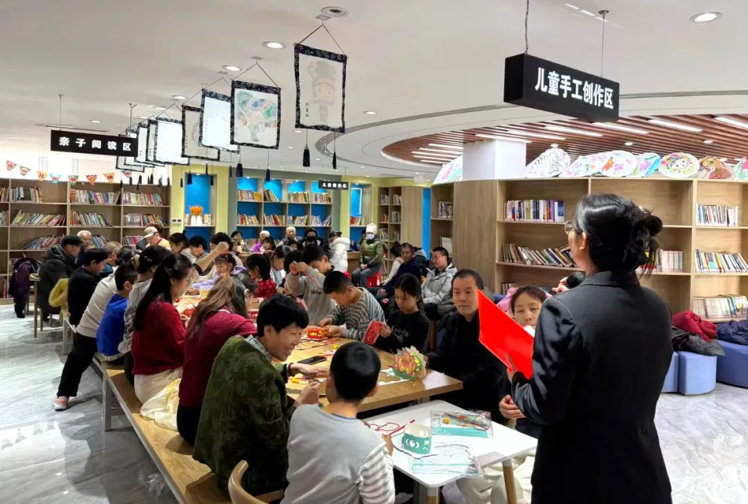 活动现场张灯结彩,年味浓郁。传统花灯制作区人头攒动,志愿者手把手指导居民裁纸、扎架、糊面、装饰,大家充分发挥创意,将书香元素与节日氛围融入花灯设计,一盏盏承载着美好期许的花灯相继成型,孩子们提着亲手制作的花灯,成就感满满。灯谜长廊里,百余条灯谜涵盖传统文化、民生政策、社区治理知识等,兼具知识性与趣味性,居民们或独自凝神思索,或三五成群热烈讨论,时不时传来“我猜对了”的欢呼。猜中者还可领取书香文创小礼品,智慧与趣味交织,文明新风在益智娱乐中悄然传递。