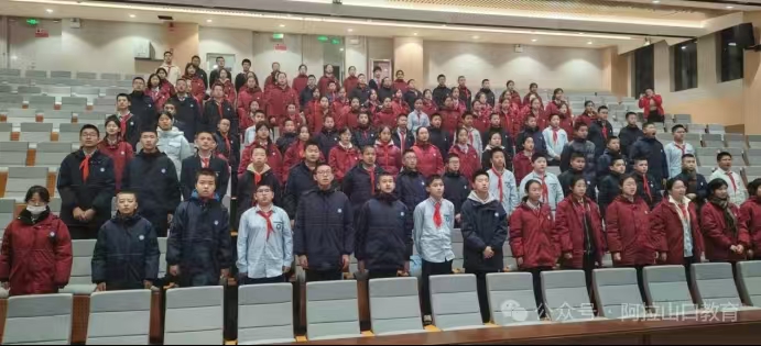 艺术报告厅内,气氛庄重而热烈。随着北京主会场升旗仪式的举行,学生们身着校服,肃立注目,跟随直播画面共同见证五星红旗冉冉升起,爱国情怀与法治意识在心中悄然升腾。