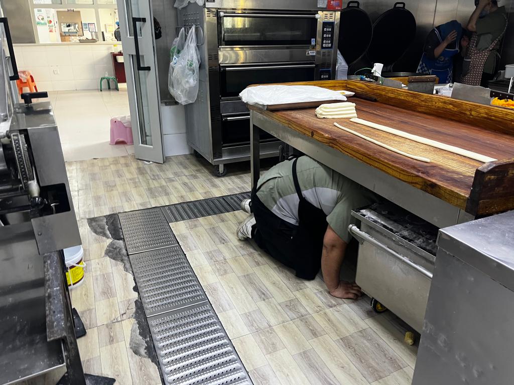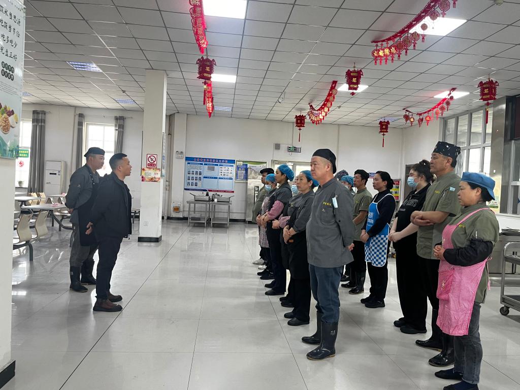 演练前,现场指挥详细讲解了地震发生时的正确避险姿势、疏散路线、疏散注意事项及自救互救技巧,明确各区域负责人职责,确保演练有序开展。演练模拟突发地震场景,随着预警信号发出,现场从业人员立即按照演练预案,迅速躲到餐桌下、墙角等安全区域,双手护头做好紧急避险;待疏散指令下达后,大家在负责人的引导下,弯腰捂鼻、有序快速地沿预定疏散路线撤离至食堂外安全空旷区域,全程动作规范、秩序井然,无拥挤、慌乱情况发生,顺利完成全部演练流程。