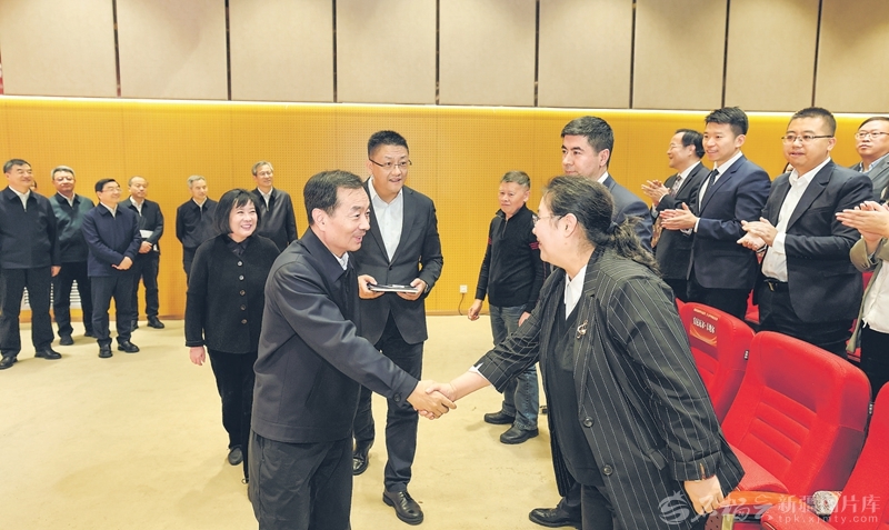 11月7日,在第26个记者节即将到来之际,自治区党委书记、兵团党委第一书记、第一政委陈小江走访调研部分中央媒体驻疆机构和自治区主要新闻单位,看望慰问新闻工作者。这是陈小江在新疆日报社,看望慰问正在开展记者节活动的全区新闻工作者代表。□石榴云/新疆日报记者崔志坚摄
