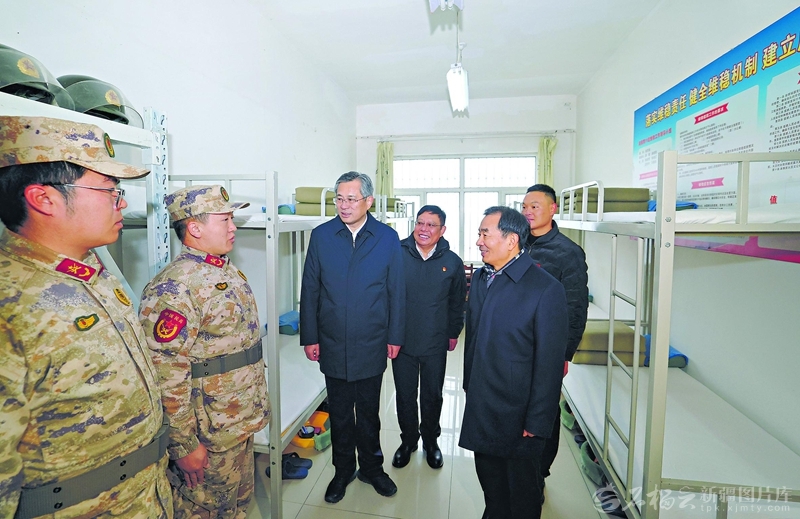 11月26日,自治区党委书记、兵团党委第一书记、第一政委陈小江在兵团第八师石河子市、第七师胡杨河市调研。这是陈小江在兵团第八师石河子市石河子总场十一连,了解连队建设情况。□石榴云/新疆日报记者崔志坚摄