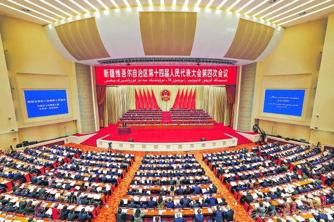 1月27日,新疆维吾尔自治区第十四届人民代表大会第四次会议在新疆人民会堂开幕。□石榴云/新疆日报记者崔志坚摄