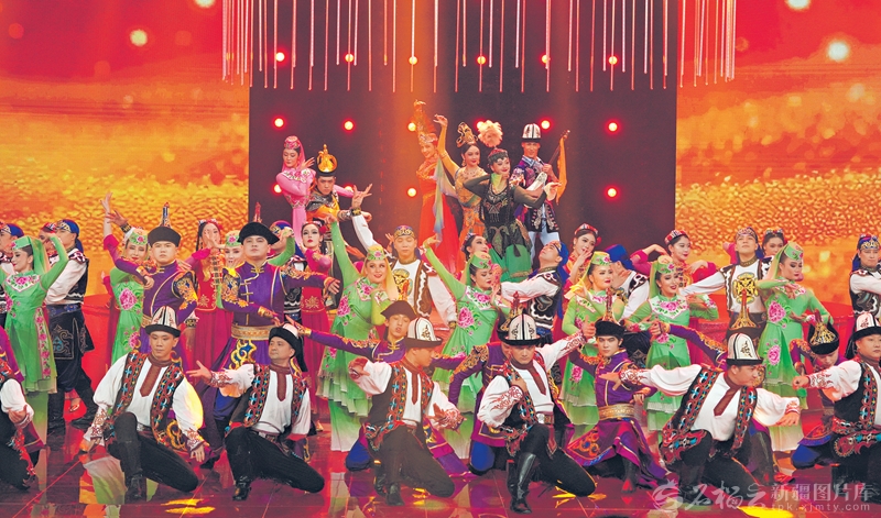 演员在表演舞蹈串烧《马上起舞》。□艾尼卡尔·艾尔肯摄