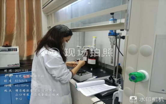 2021年11月2日,阿拉山口市农产品检测中心技术人员对近期在农贸市场抽样的韭菜、芹菜、豇豆等3中蔬菜进行有机氯、有机磷加标检测,并在实验室配制有机氯、有机磷等39项农药残留检测试剂,并上机观察出峰时间等相关检测工作。着力保障民众“舌尖上的安全”,确保将党史学习教育成效转化为工作成果。