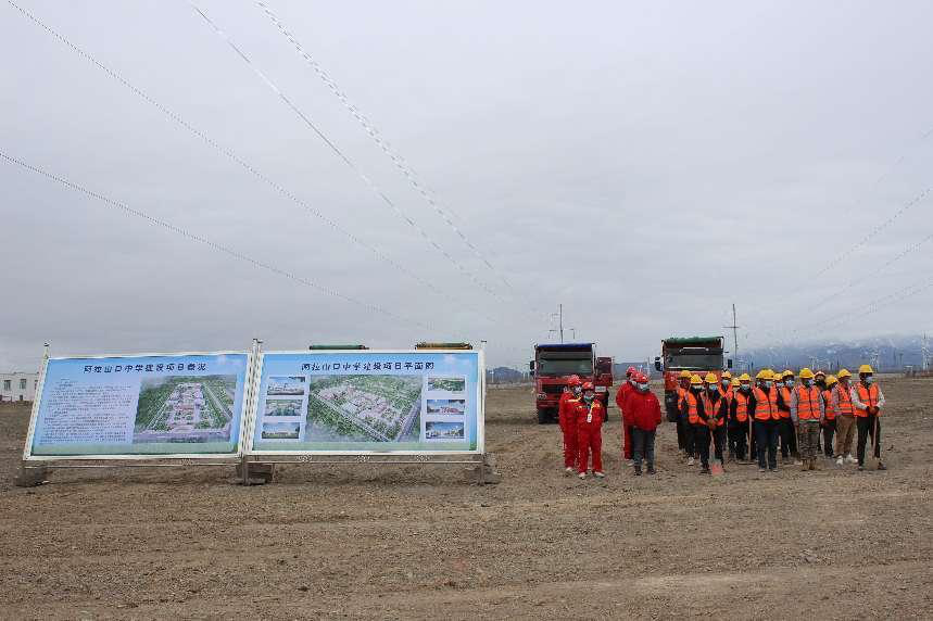 3月 15 日,阿拉山口中学建设项目开工仪式在施工地现场举行。