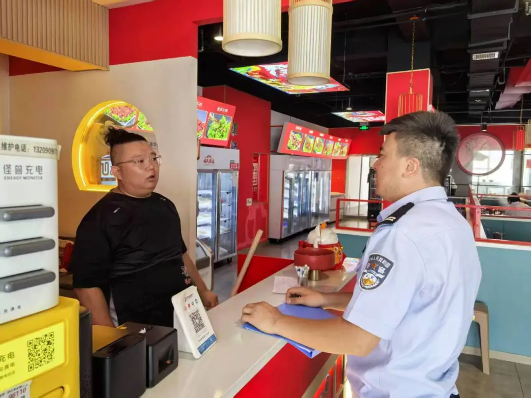 巡查间隙,民警向各经营场所负责人叮嘱: “电线老化要及时换,灭火器得定期查压力”,向过往群众普及防诈知识: “最近有冒充客服退款的诈骗,千万别点陌生链接”,并发放宣传手册,提升辖区群众安全防范与自我保护能力,引导群众主动参与社会稳定维护。
