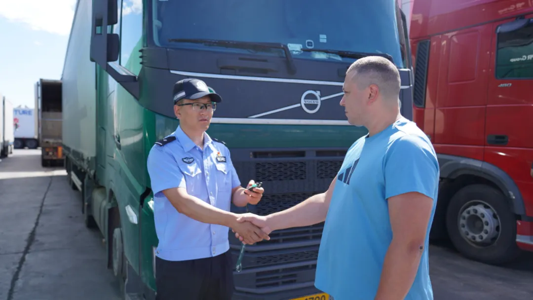 “综合保税区里两辆车剐蹭了,有一辆是外国货车!”2025年10月,阿拉山口市110接警台接到群众报警,称一辆哈萨克斯坦籍重型半挂牵引车与中方重型半挂牵引车发生剐蹭事故。接警员第一时间通过电话核实现场情况,在确认无人员受伤、仅车辆轻微受损后,立即指派就近警力赶赴现场,同时贴心提醒双方当事人:“请在车辆后方放置警示标志,注意现场安全防护。”民警抵达后,发现哈萨克斯坦籍驾驶人存在语言沟通障碍,当即拿出手机打开翻译软件,配合手势比划,逐句向外籍驾驶人说明“涉外交通事故协商处理流程”“责任认定依据”“赔偿协商要点”等关键信息,全程保持耐心细致,确保对方准确理解。在民警的搭建的沟通桥梁下,中外双方当事人围绕车辆剐蹭部位、维修费用等问题展开平和协商,最终达成一致赔偿意见,当场签订协商协议,高效化解此次涉外交通事故。