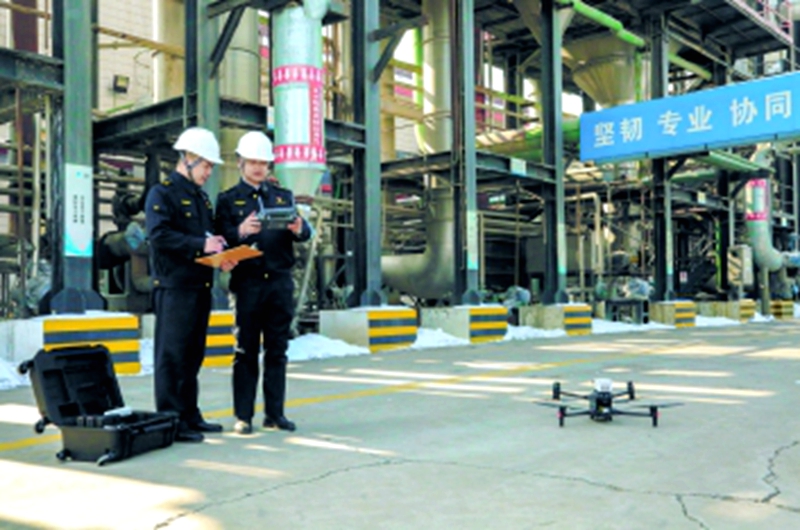 自治区生态环境执法人员操控新装配的“无人机搭载环境气体检测仪”对园区企业无组织废气排放进行巡航监测(2024年2月28日摄)。