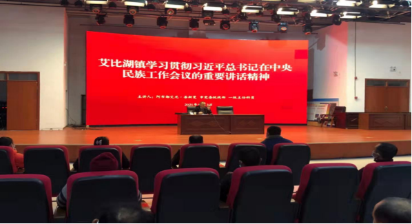 为深入学习贯彻中央民族工作会议精神,11月3日,艾比湖镇宗教管委会组织务工人员在百姓大舞台开展宣讲,党委统战部一级主任科员阿布都艾尼出席并讲话,参加人员20人。