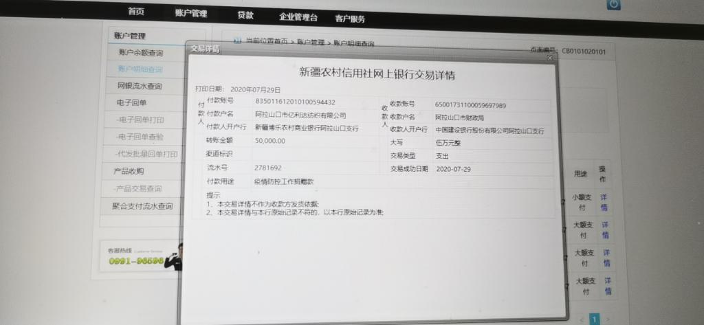 疫情无情人有情,爱心捐款见真情。7月29日,阿拉山口市亿利达纺织有限公司向全市捐款5万元,8月4日,阿拉山口捷安物流有限公司向全市捐款10万元。