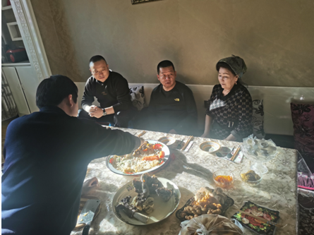 上午11点,三人从阿拉山口市出发,中午1点半抵达温泉县也斯别克·解恩斯家中,局领导对其家人一一问候,表示感谢他们对疫情防控工作的理解和支持,也斯别克同志不畏艰险,迎难而上,舍小家、顾大家,奔赴疫情防控最前沿,他的行为离不开家属的理解和支持。家属们有任何困难,及时联系市财政局,我局定会努力帮助、尽力解决。家属们也要照顾好家庭,料理好家中的大小事务,让也斯别克心无旁骛,全身心投入抗击疫情的工作。并为家人送上价值300元的慰问品。也斯别克·解恩斯家属表示,他这段时间比较繁忙,但是作为家属,都非常支持他的工作。因为这是为了维护老百姓的健康服务的,家里承担一点也是应该的,没有困难诉求,希望也斯别克好好工作,家人永远是他最坚强的后盾。