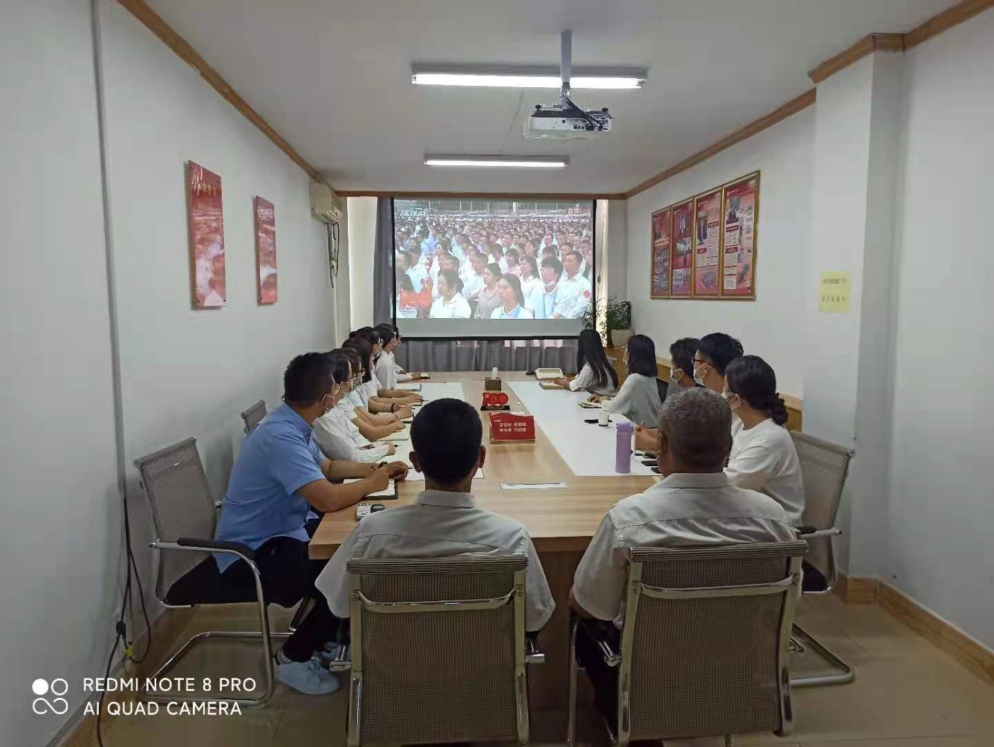 7月1日上午8时,庆祝中国共产党成立100周年大会在北京天安门广场隆重举行。中共中央总书记、国家主席、中央军委主席习近平出席大会并发表重要讲话。我办组织全体干部职工集中观看大会现场直播。
