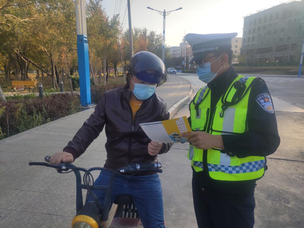 一是路面宣。把宣传教育融入到路面执勤执法中,在纠正交通违法行为时,针对具体违法行为,向违法人、乘车人讲清危害,做到每纠正或处罚一起交通违法行为都进行一次安全宣传。民警在查纠交通违法行为时实现处罚与教育并重,充分利用巡逻执勤、检查点开展宣传,让交通违法司机充分认识到违反道路交通法规的危险性和严重性,自觉遵守安全行车规范。开展秋季道路交通安全专项整治行动以来,共纠正摩托车、电动车违法20余起,教育劝导350余人次。