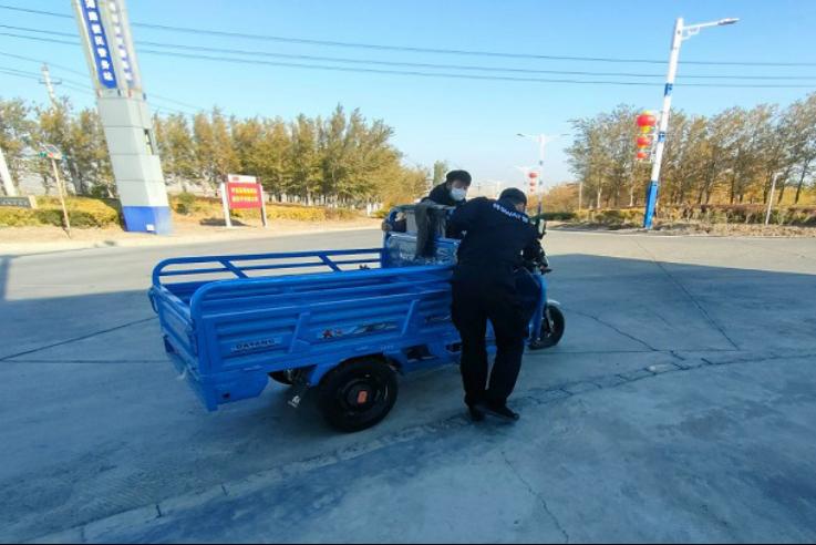 10月20日17时许,阿拉山口市公安局艾比湖路便民警务站车巡组在巡逻中发现远处一群众在艰难的推着电动三轮车,一边掌握方向一边走,走走停停。