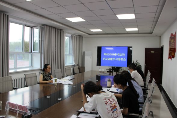 为进一步落实新时代党的治疆方略、特别是社会稳定和长治久安总目标,加快推进市域社会治理现代化,全力维护社会和谐稳定,努力建设更高水平平安山口,6日下午阿拉山口市司法局组织全体干警学习平安建设文件并进行了应知应会抽查,局领导结合单位实际安排部署了三个方面的工作: