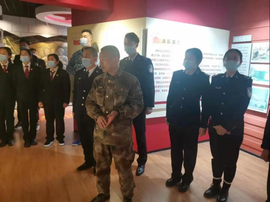 期间,阿拉山口市司法局全体党员干警走进阿拉山口市边防连,参观边防连连史纪念馆,观看边防站首任站长吴光胜先进纪录片。同时,在讲解员的带领参观和讲解下,进一步学习了解了边防连相关历史事迹,重温了先辈不畏艰苦、扎根边疆、忠诚戍边的感人事迹,从而进一步锤炼了司法干警忠诚担当的政治信仰,弘扬英模精神,传承英雄品格,缅怀英烈功绩,确保优良传统不断线、红色基因不断链。