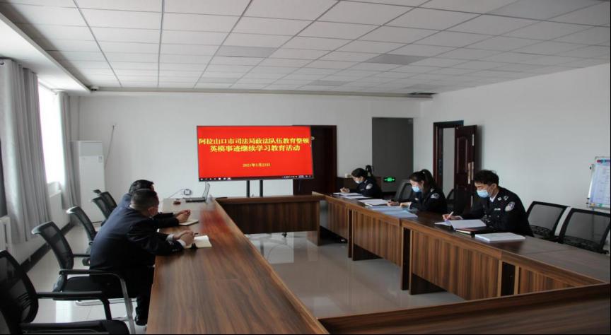 3月23日,阿拉山口市司法局围绕“学英模赶先进、锻造司法行政铁军”为主题,开展政法队伍教育整顿继续学习英模教育活动,观看英模教育片,学习英模先进事迹。