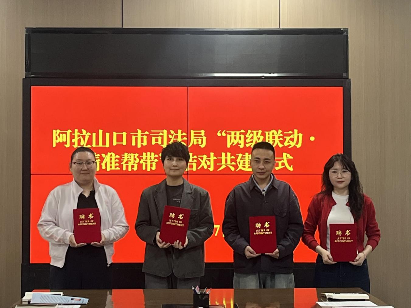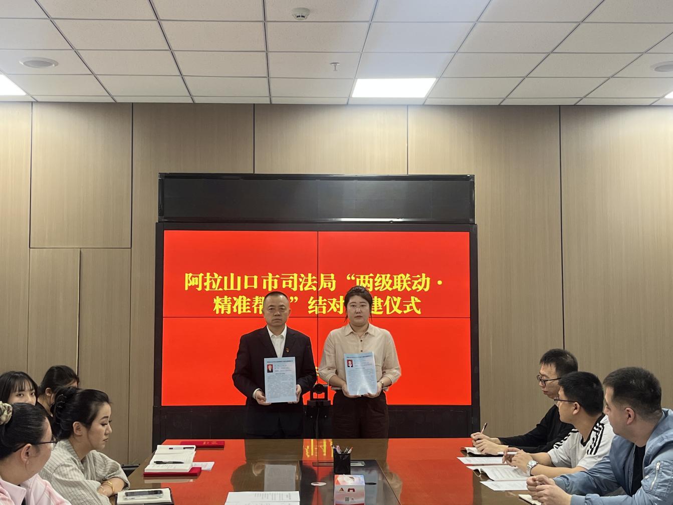 为深入学习贯彻习近平总书记关于干部队伍建设的重要论述和重要指示精神,全面贯彻落实各级政法、司法行政工作会议精神及新时代政法干部队伍建设总要求,充分发挥领导班子“头雁效应”和中层骨干“传帮带”作用,全面提升干部队伍综合素养与履职能力,4月7日,阿拉山口市司法局举行“两级联动·精准帮带”结对共建仪式。党组书记、副局长刘涛主持并讲话,班子成员、结对师徒及全体干部参加结对仪式。
