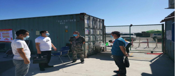 (博州自然资源局党组成员、副局长刘文新同志在阿拉山口聚力砂石料厂检查指导疫情防控复工复产准备工作)