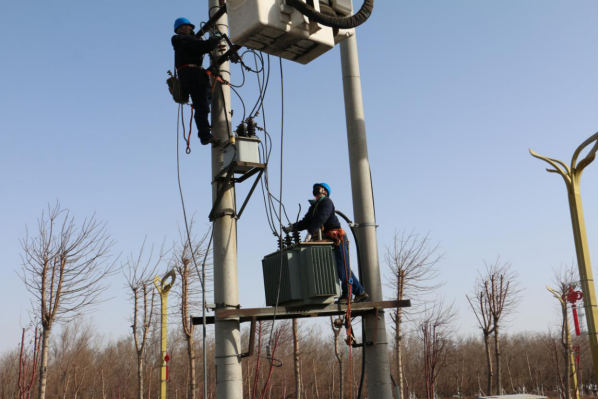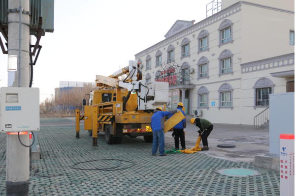 经核查故障地段在110kV阿拉山口变电站10kV阿城二线25号杆,大风刮断了所属变压器一根引流线,需要更换新线。山口供电公司及时将现场调查情况上报国网博尔塔拉供电公司,同时向博尔塔拉供电公司带电作业班提出带电作业申请,3月8日下午,寒风依旧凛冽刺骨,山口供电公司积极准备,提前做好了作业材料保障,16:00,博尔塔拉供电公司携带配电带电作业工作票及施工车辆赶赴现场与山口供电公司协同处理故障。作业前施工人员首先向供电公司调度申请退出10kV阿城二线1076线路重合闸,然后在工作点下方设置警戒线防止非工作人员进入,并安排专责监护人加强现场监护。按照抢修计划,施工人员分成两组,第一组是高压作业处理组,具体负责更换引线。第二组是低压作业处理组,负责协同配合高压作业组处理我局办公楼内低压线路。18:00,抢修工作按计划如期展开,严格按照程序进行,例行开展站班会,强调作业的工作任务、注意事项及了解施工人员的身心状况;施工人员佩戴合格的绝缘手套、绝缘安全帽及穿绝缘服;施工人员检查绝缘斗臂车液压机构是否正常;施工人员乘坐绝缘斗臂车对施工点带电体及构件进行绝缘包裹;施工人员各司其职,协同联动,依照操作规范准确有序完成抢修。20:00阿拉山口市市场监督管理局恢复正常用电。