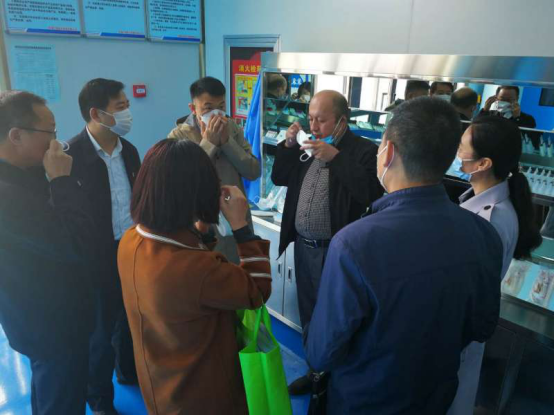 调研组实地查看口罩生产线 调研组在查看企业资料