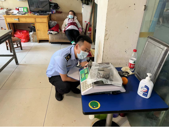 计量技术人员对经营户使用的数字指示秤进行免费检定