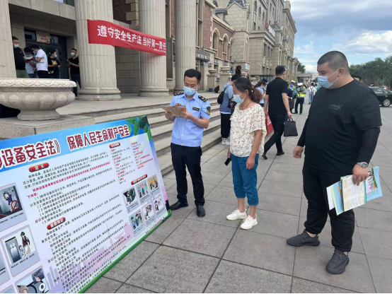 2022年6月是第21个全国“安全生产月”,主题是“遵守安全生产法,当好第一责任人”。6月16日上午,阿拉山口市“安全生产月”宣传活动在汽车站前隆重举行,阿拉山口市市场监督管理局组织执法人员参与开展宣传活动。