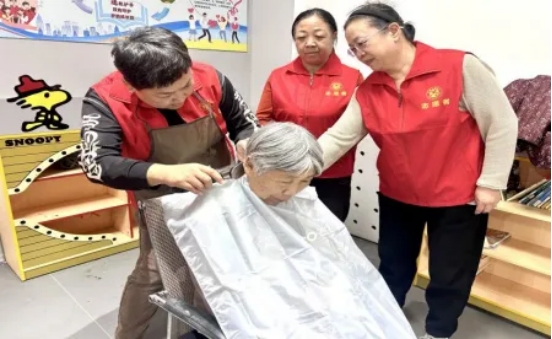 活动当天,社区工作人员与志愿者提前到位,有序完成了场地的布置与全面消杀工作,全力保障老人的健康安全。活动伊始,辖区老人们遵循志愿者指引,现场排队流程规范有序。理发时,志愿者们俯下身耐心询问每位老人的需求,结合其脸型、发质和日常习惯推荐合适发型,娴熟地修剪、梳理,每一个动作都细致入微。针对行动不便、乘坐轮椅前来的老人,志愿者主动上前协助推轮椅、搀扶起身,全程贴身照料,让老人既安心又暖心。“年纪大了腿脚不利索,去理发店要走老远,现在社区把服务送到家门口,剪完头发整个人都精神了!”刚理完发的李桂兰奶奶对着镜子反复打量,脸上笑开了花,拉着志愿者的手不停道谢。
