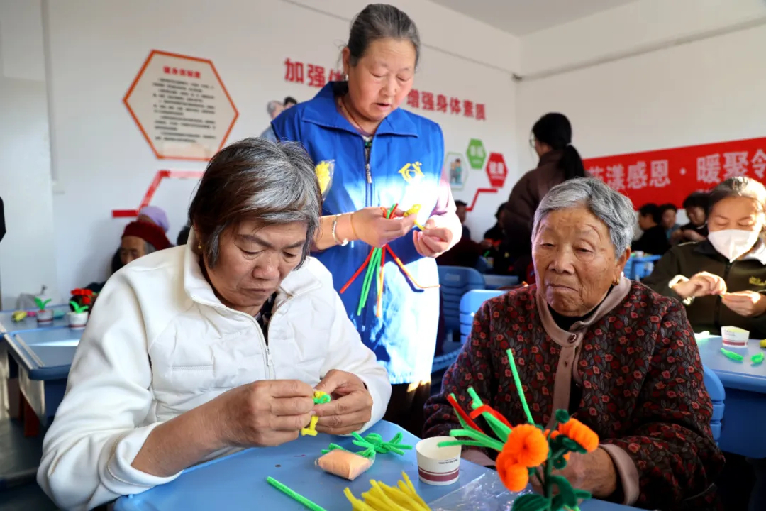 在动手制作环节,社工与志愿者们细心观察,主动走到行动不便或操作不熟练的老人身边,给予一对一协助——有的帮忙固定花型,有的协助搭配色彩,忙的不亦乐乎。志愿者手把手教张奶奶扭制花茎,社工则贴心帮唐阿姨调整花瓣形态……在互帮互助的温馨氛围中,一朵朵独具匠心的纸杯花陆续在老人们手中“绽放”。