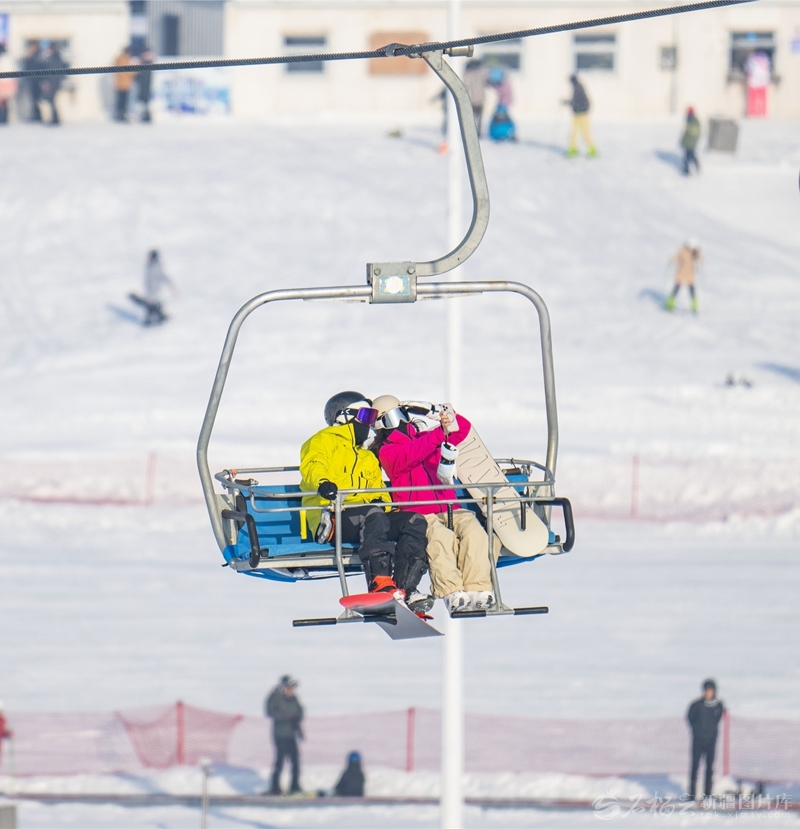 1月1日,在昌吉市努尔加滑雪场,游客乘坐索道前往雪道顶端。□何龙摄