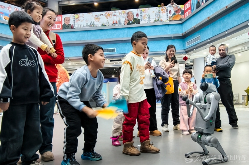 1月1日,小朋友在新疆科技馆看机器狗表演。□石榴云/新疆日报记者汤永摄